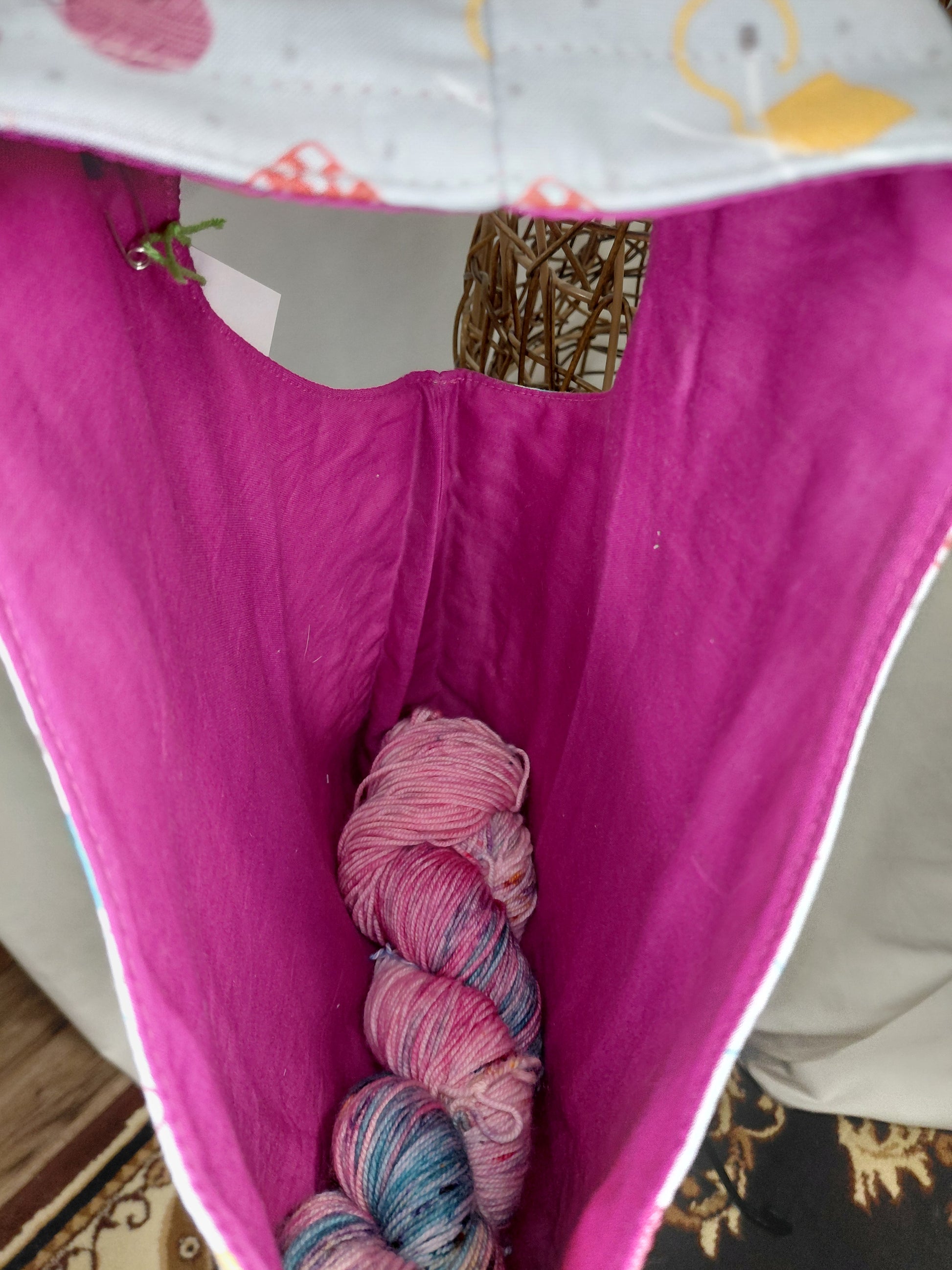 The fabric is quilters cotton and has a contrasting fuchsia lining.