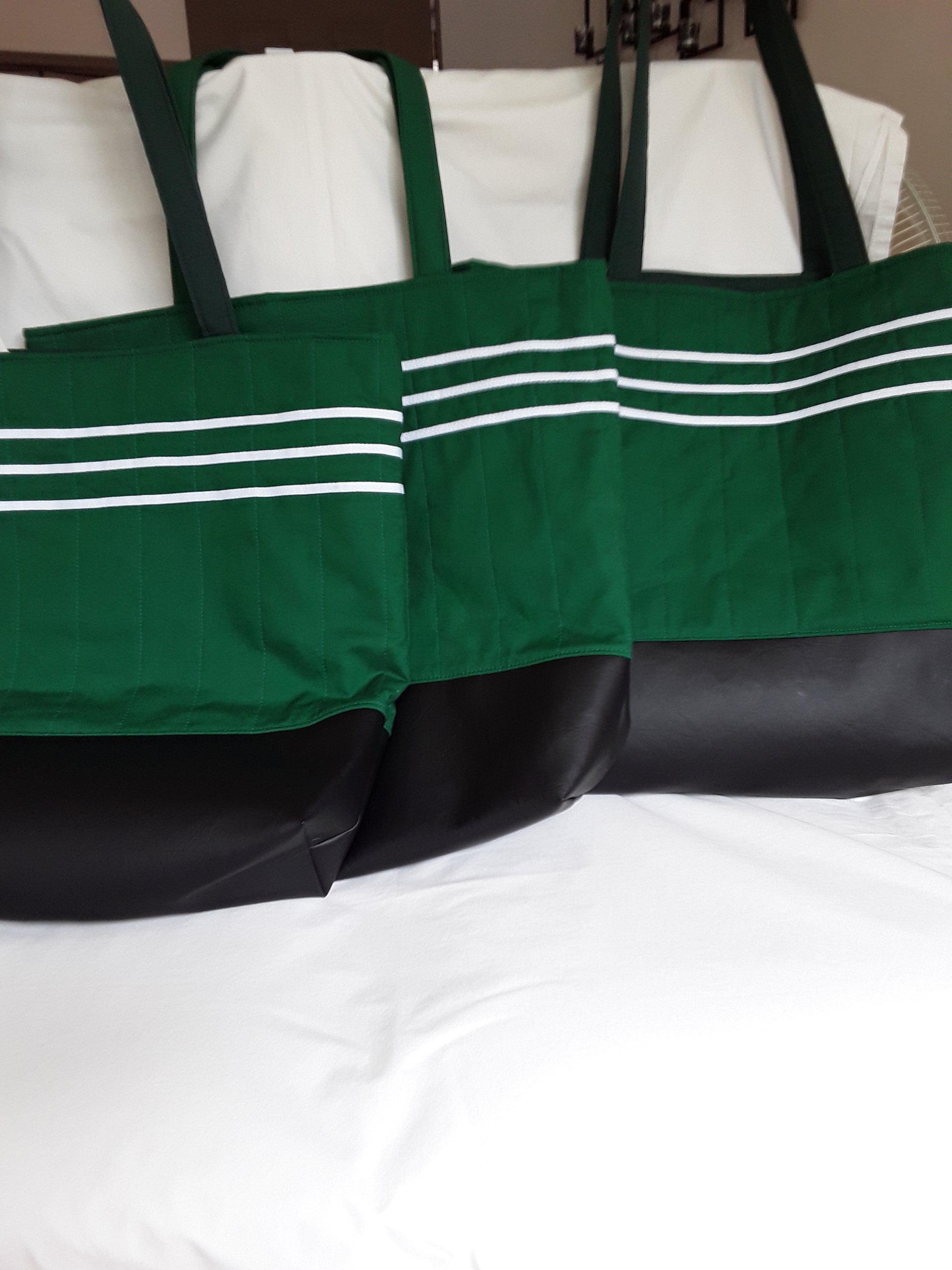 Tote Bag, Green bag with White Stripes Tote, Green Tote bag, Green carry bag, Green Travel bag
