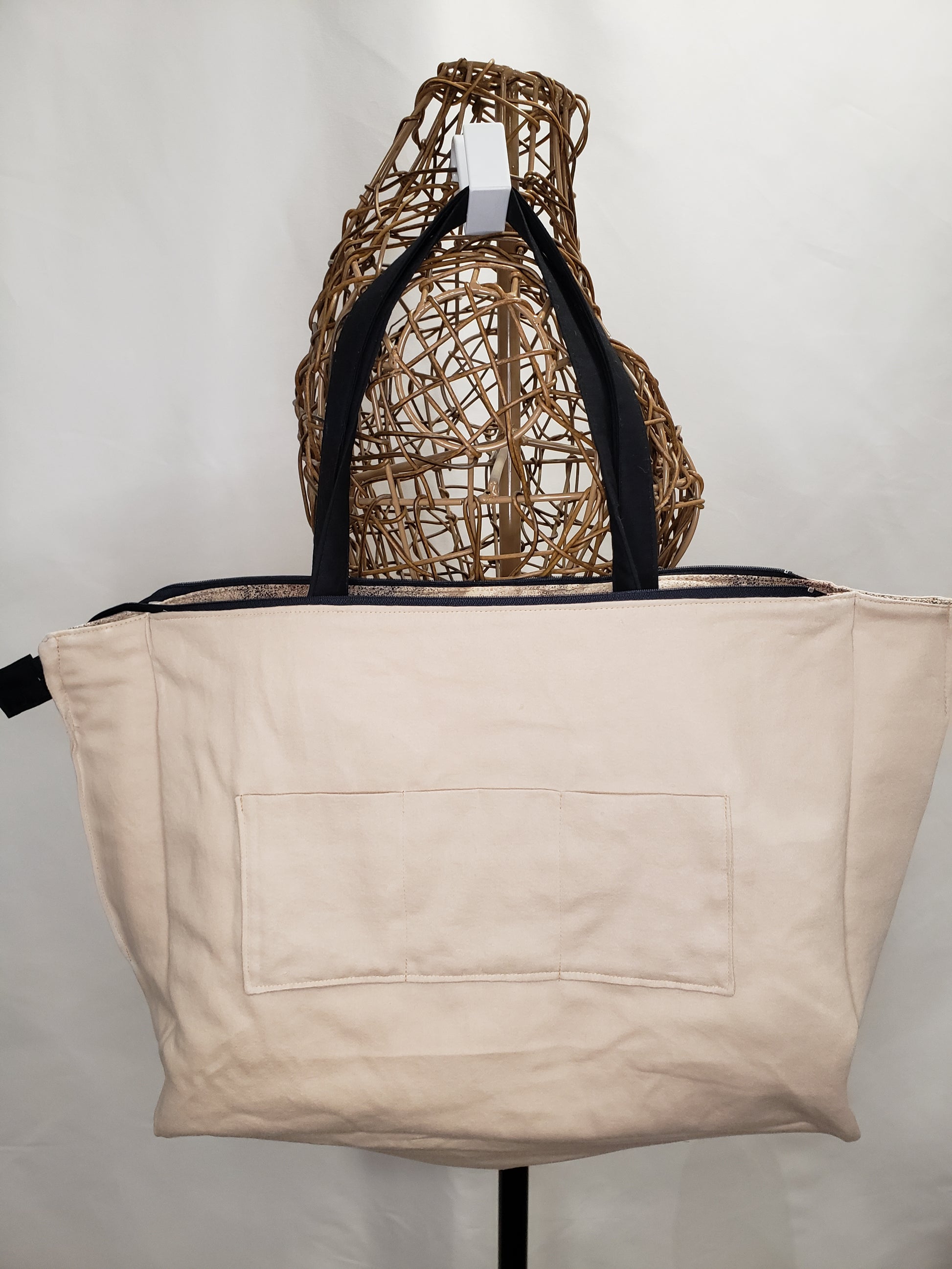 Tote Bag, Beige and Black Zippered Tote Bag, Quilted Tote bag, Beige Carry bag, Large Project bag, Large travel bag