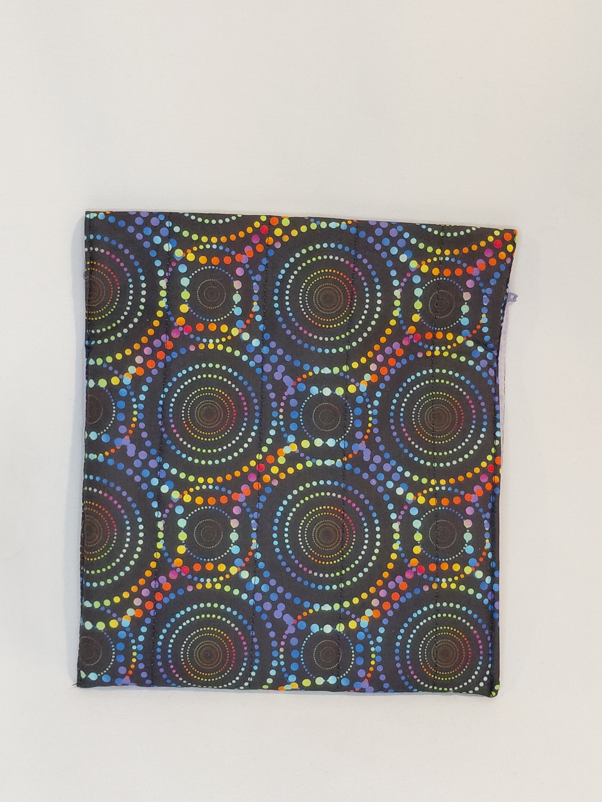 A beautiful case to hold your crochet hooks and/or double pointed knitting needles. It has a zippered pocket at the back to hold cords, notions or other crafting items. There is a pocket in front that could hold measuring tapes, size gauge or other tools. The case flap folds over and is held with 2 matching cam snaps. There are 14 slots for hooks or double-pointed needles.