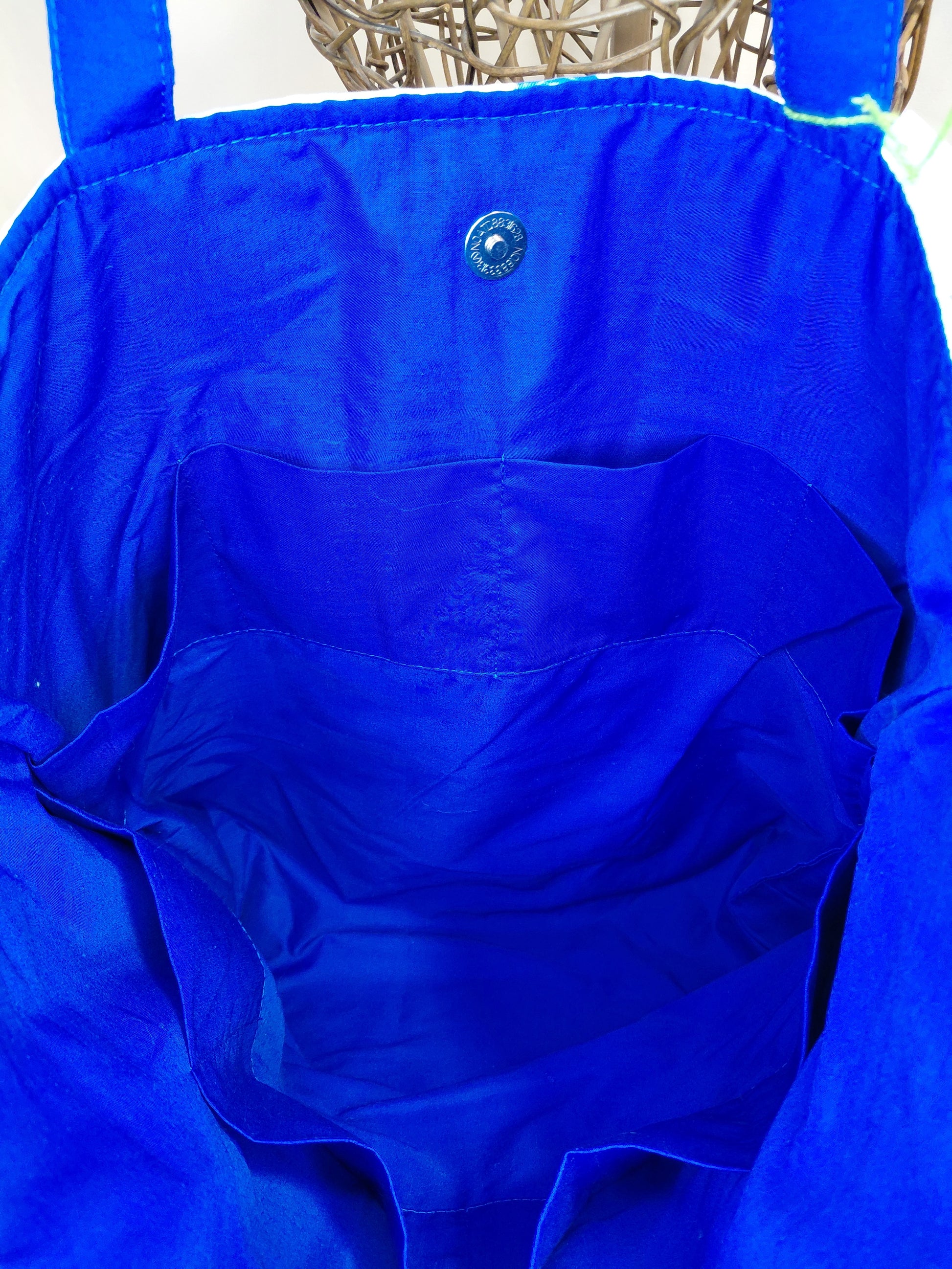 A beautiful and functional tote for all your projects. 8 interior pockets for notions, phone, etc. Vinyl base ensures that the bag is easily cleaned. Measures 17 x 15 x 4 inches (43 x 38.5 x 10 cms). Handles are 21.5 inches (55 cms)