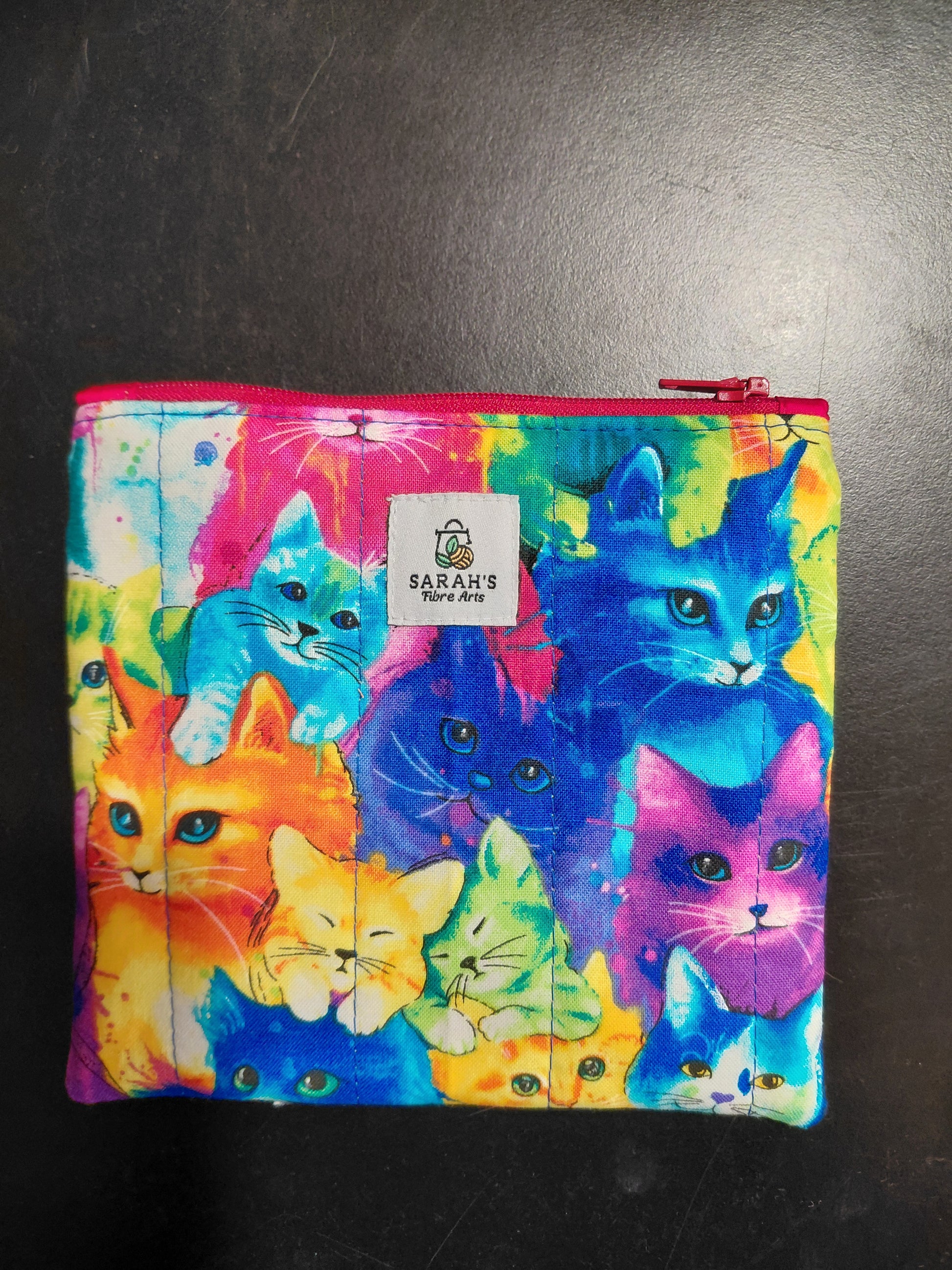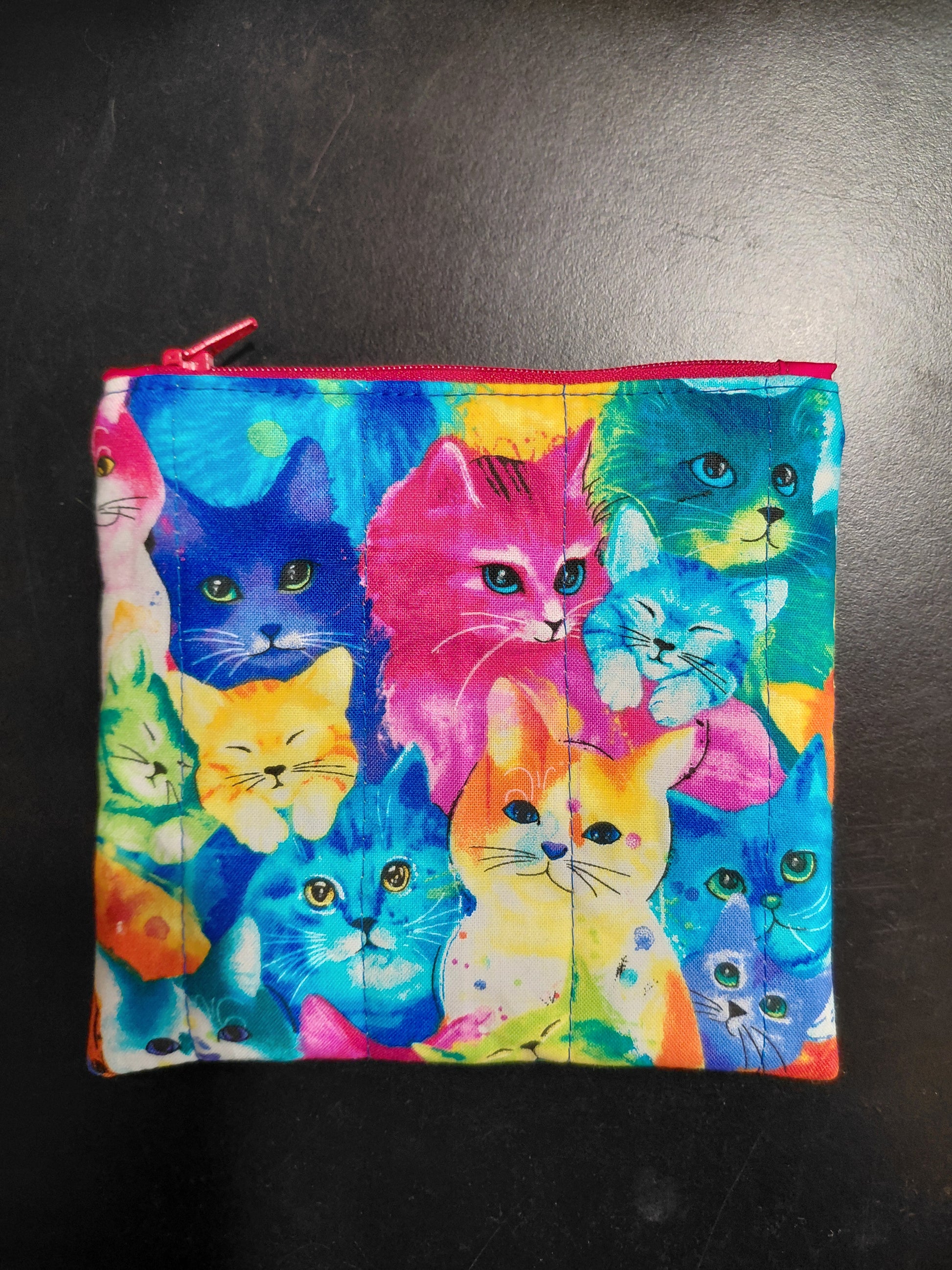 Zippered pouch, Cats notions bag, Cat coin purse, cat coin pouch, colourful cats bag, exotic cats bag