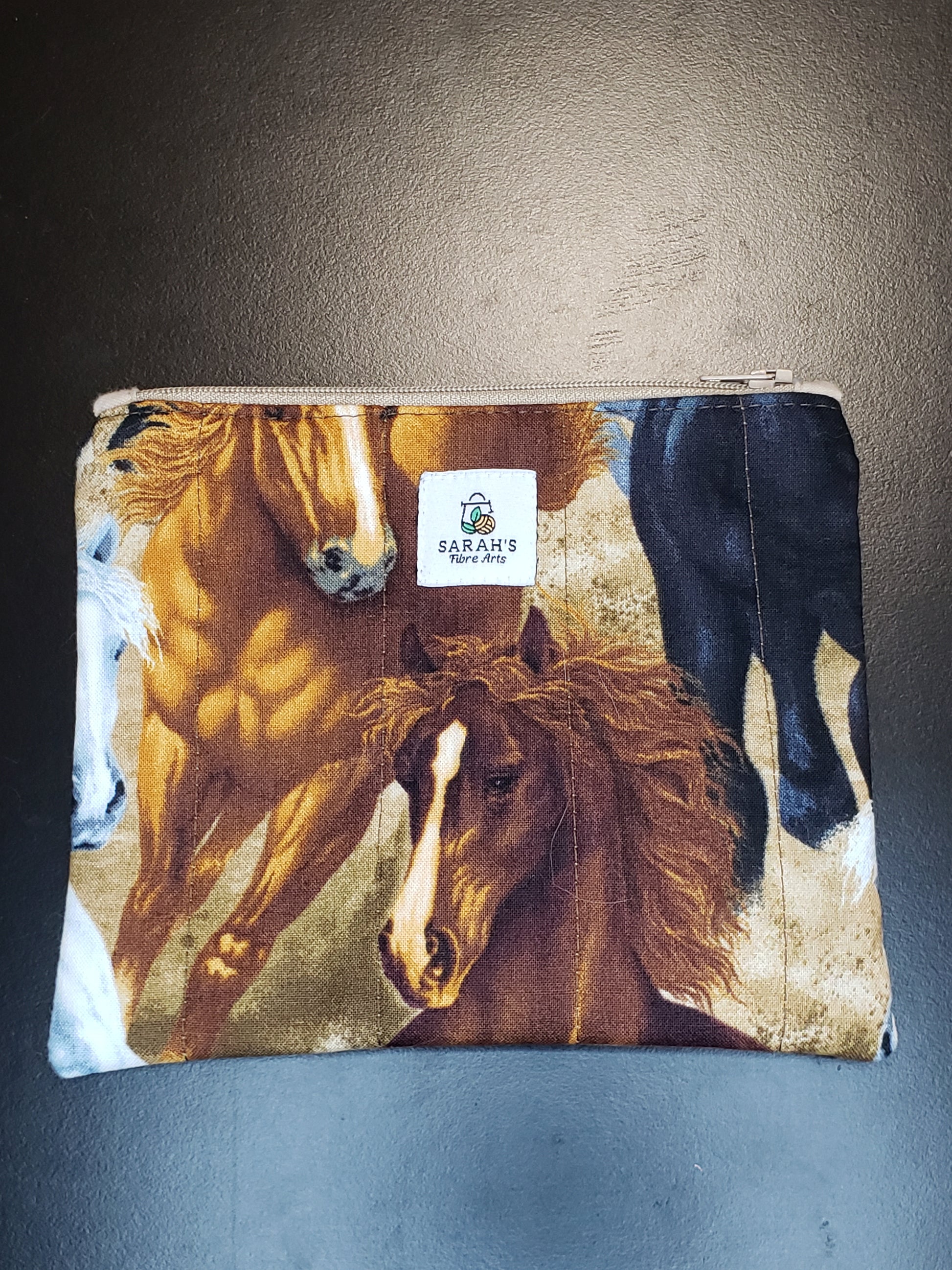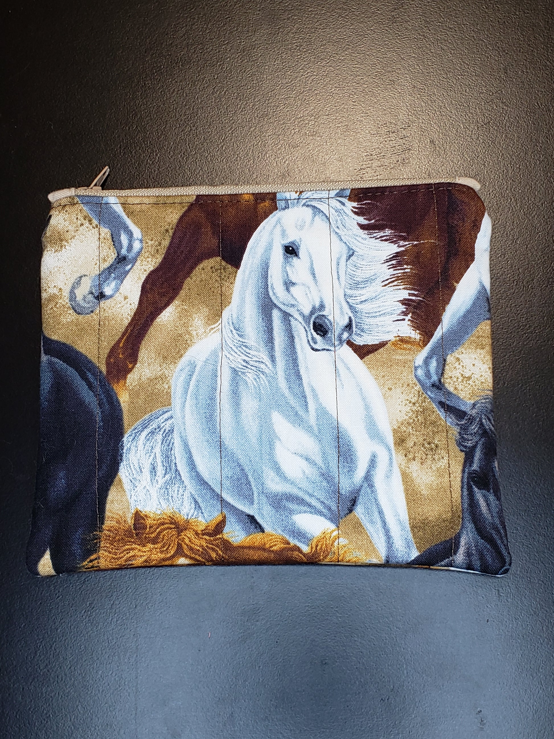 Zippered pouch, Horses notions bag, Horse coin purse, brown coin bag
