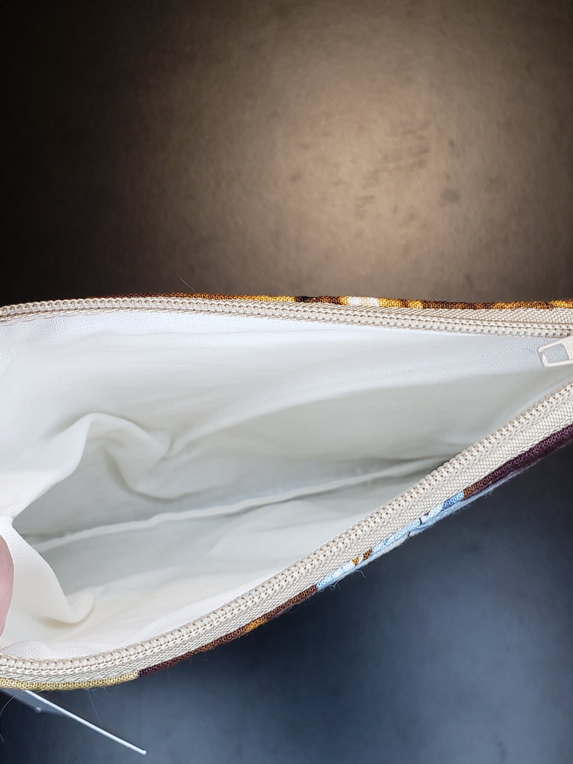 A small zippered notions bag/coin purse. Measures 6.5 x 5.5 inches (16.5 x 14 cms).